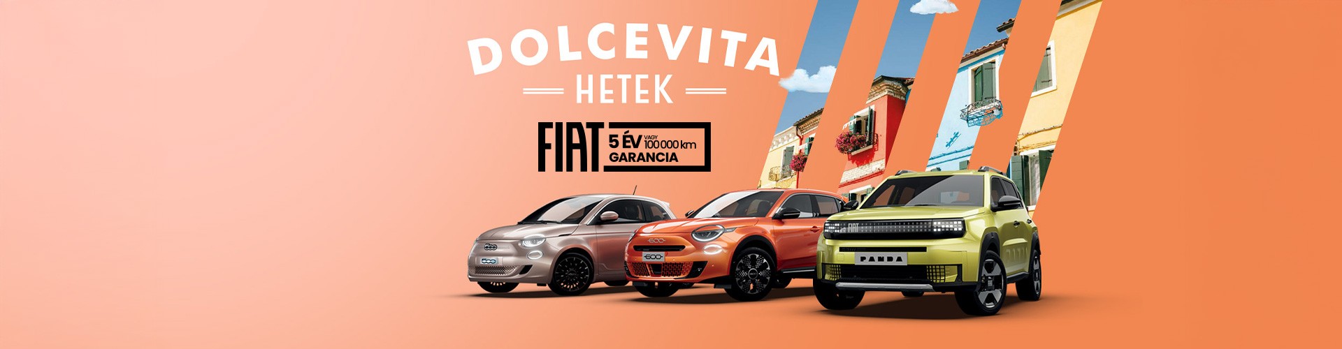 *A Dolce Vita napok ajánlat 2026.02.09-től visszavonásig, de legkésőbb 2026.04.30. -ig, illetve az 500 Hybrid 1.0 BSG 65LE 302.D14.0 modell esetén a 100 db-os limitált gépjármű darabszám eléréséig él (amelyik hamarabb teljesül), az ajánlatban feltüntetett Fiat modellekhez vehető igénybe, az akcióban részt vevő Fiat márkakereskedésekben, további akcióval és kedvezménnyel nem összevonható.