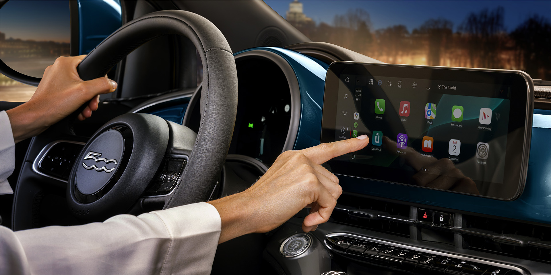 Az 500 Hybrid Torino intuitív technológiájával őrzi egy ikon lelkét, miközben magabiztosan halad előre. A nagy felbontású, 10,25 colos érintőképernyő és a 4 hangszóró éles képet és magával ragadó hangzást nyújt, így minden utazás igazi élménnyé válik. A vezeték nélküli Apple CarPlay és Android Auto pedig gondoskodik róla, hogy a világod mindig zökkenőmentesen kapcsolódjon hozzád.